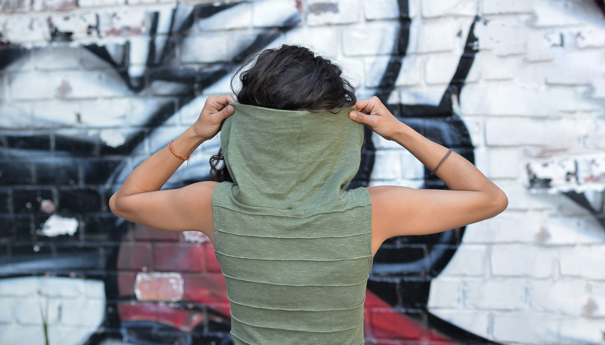 This streetwear top features a fabric collar which can be worn up around the neck or folded down, either way you will look gorgeous!
